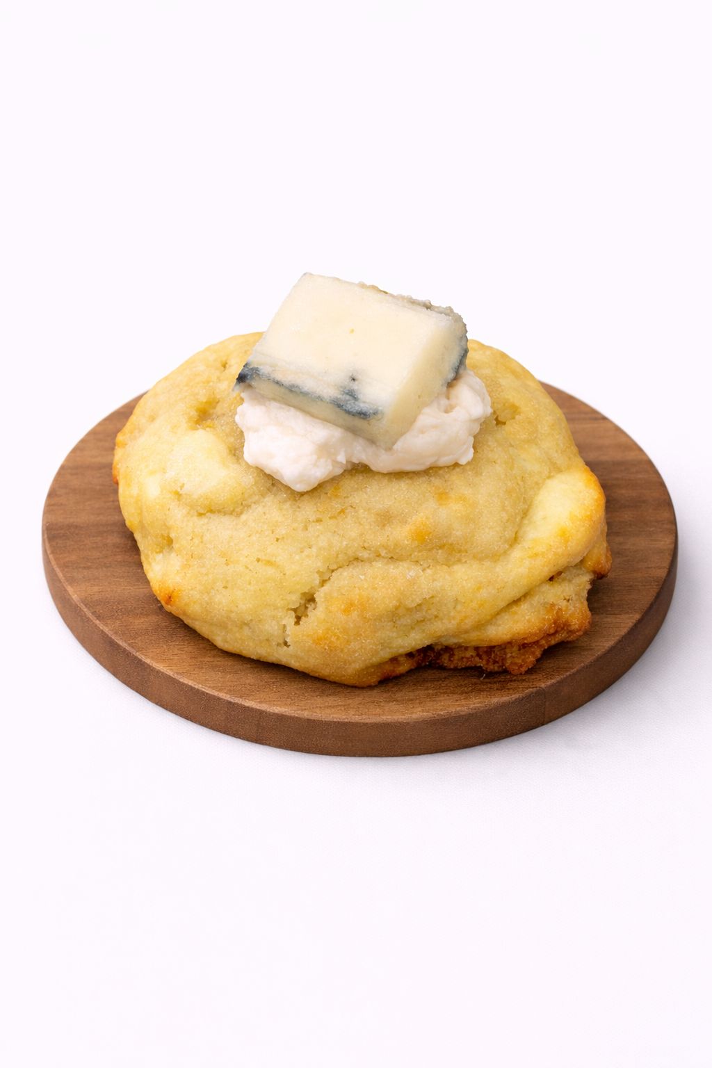 Una base de cookie salada, tierna y equilibrada, elaborada con queso Cabrales que aporta un sabor intenso, profundo y muy característico.