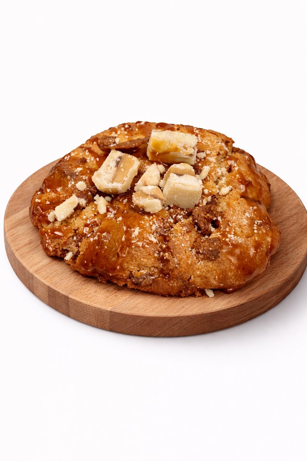Una base de cookie suave y dorada, combinada con trocitos tipo galleta, caramelo cremoso y chocolate que se funde en cada bocado, recreando el sabor inconfundible del Twix.