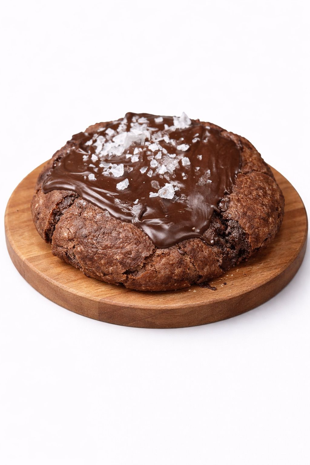 Una base de cookie de chocolate intensa, jugosa por dentro y ligeramente crujiente por fuera, rematada con un toque de sal que potencia el cacao y equilibra el dulzor.