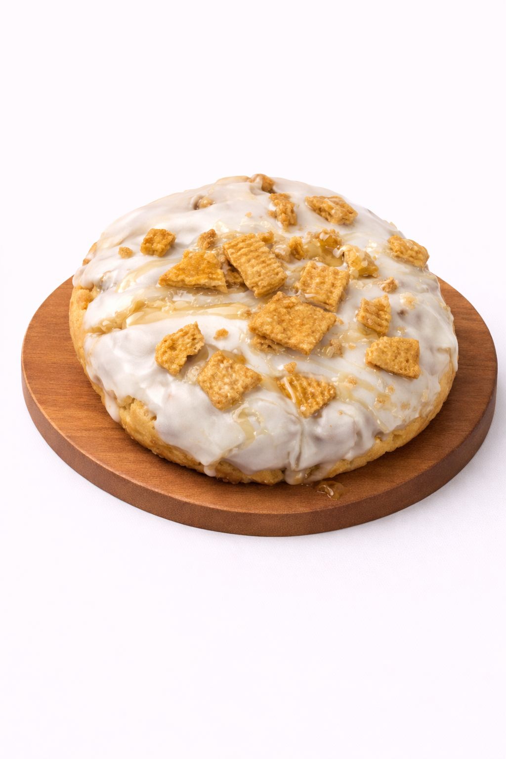 Una base de cookie suave y dorada, elaborada con cereales Golden Grahams y un toque de miel que aporta dulzor y aroma, coronada con una capa de chocolate blanco mezclado con cereales crujientes que eleva cada bocado.